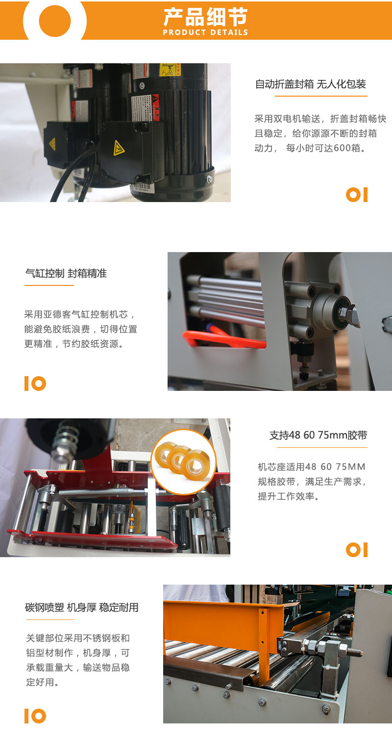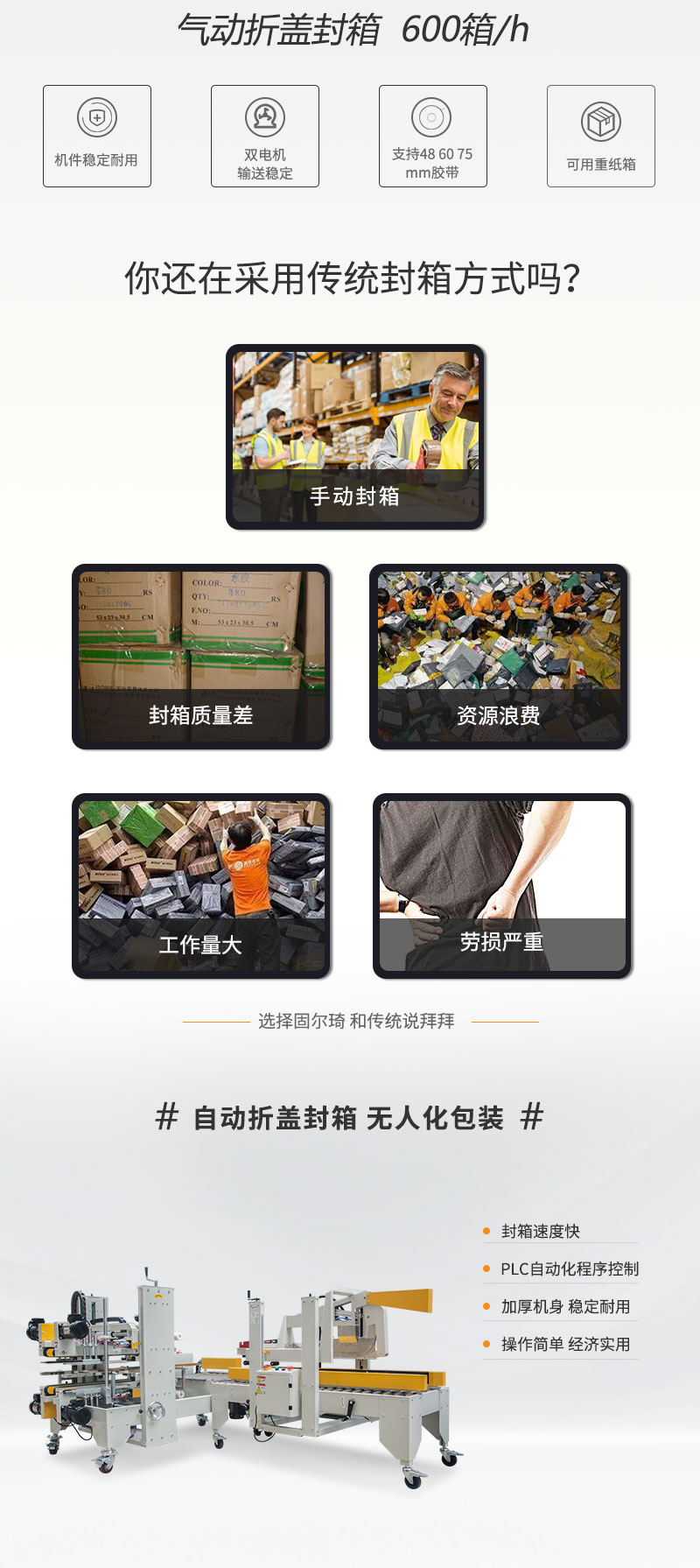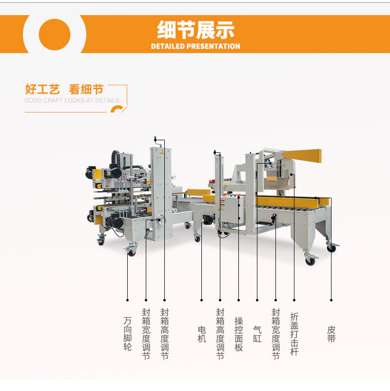 電商封箱機配套快遞貼面單機,封箱貼面單效率日發8000+。具備一鍵式傻瓜操作,自動化封箱貼面單一步完成,保養簡單,穩定性強的特點