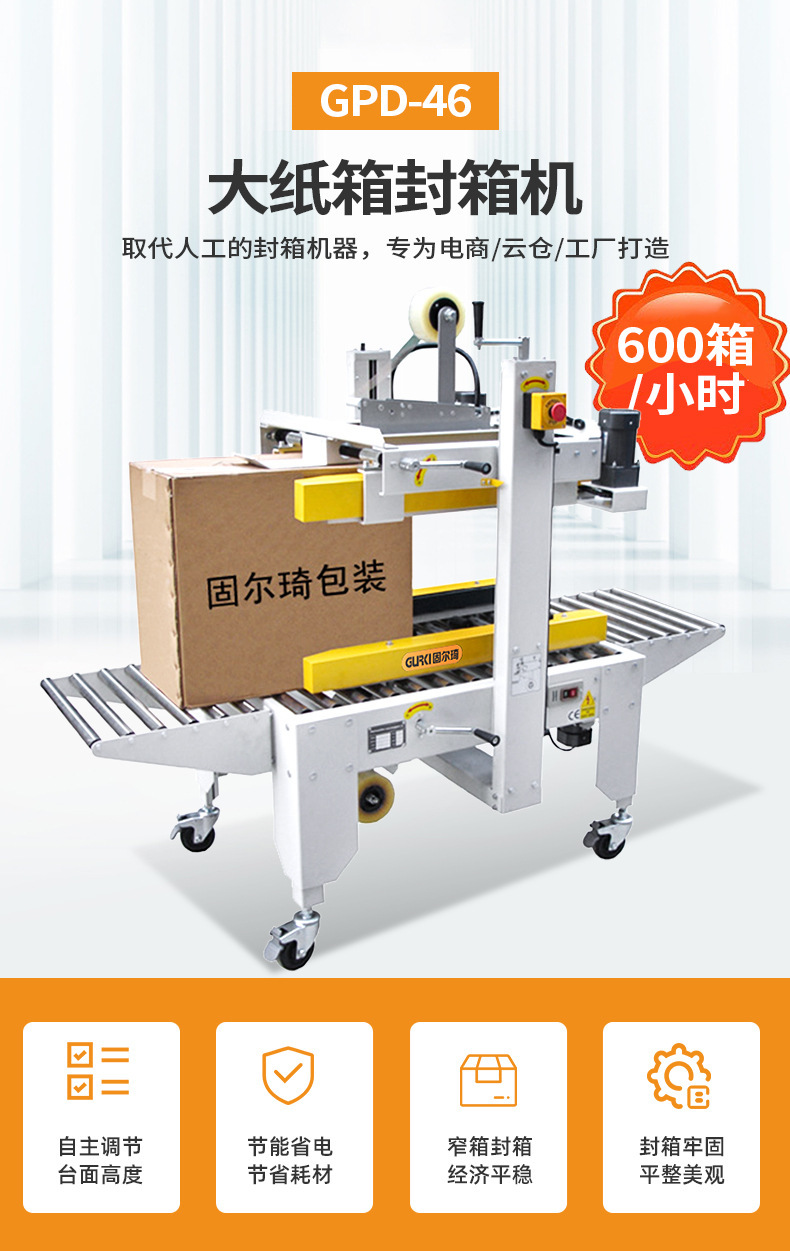 電商封箱機配套快遞貼面單機,封箱貼面單效率日發8000+。具備一鍵式傻瓜操作,自動化封箱貼面單一步完成,保養簡單,穩定性強的特點
