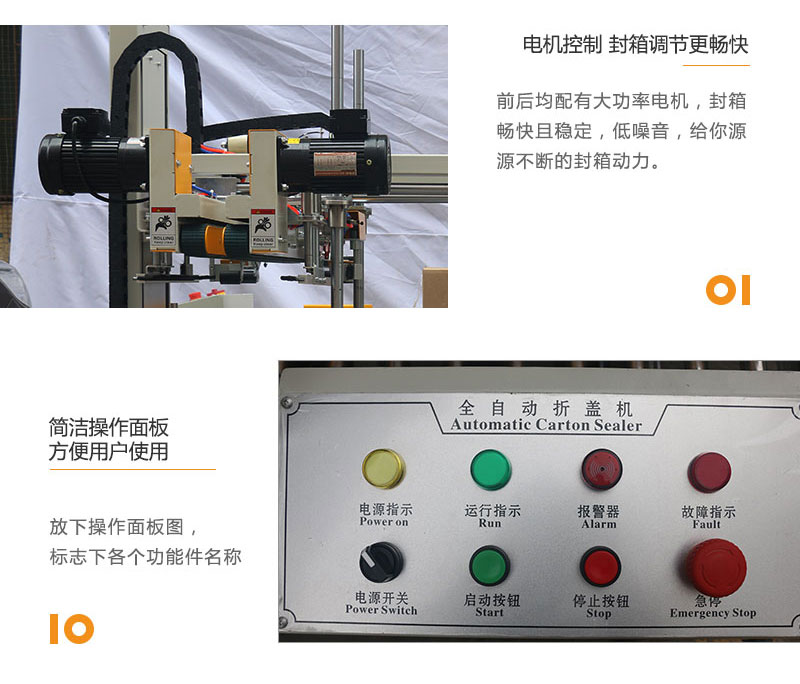 電商封箱機配套快遞貼面單機,封箱貼面單效率日發8000+。具備一鍵式傻瓜操作,自動化封箱貼面單一步完成,保養簡單,穩定性強的特點