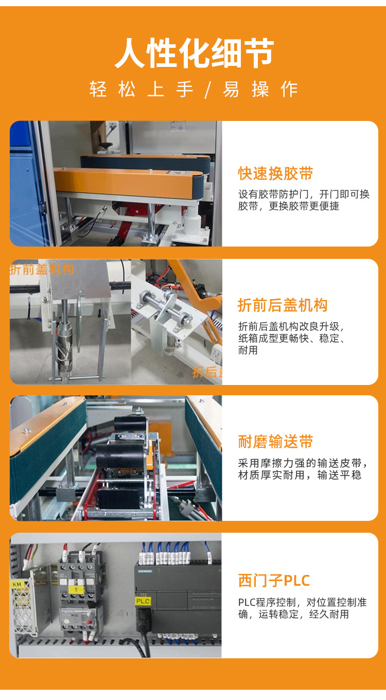 電商封箱機配套快遞貼面單機,封箱貼面單效率日發8000+。具備一鍵式傻瓜操作,自動化封箱貼面單一步完成,保養簡單,穩定性強的特點
