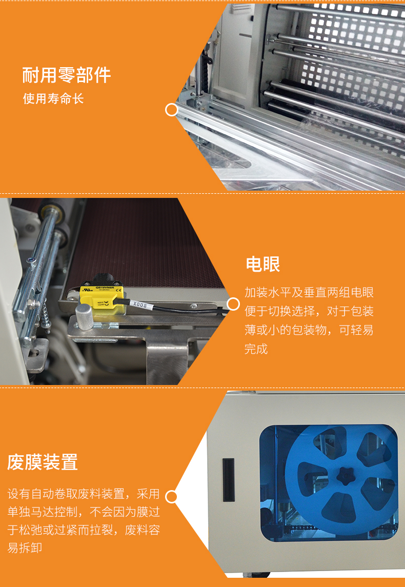 全自動邊封收縮包裝機是一款非標定制產品,整機配有PLC程序系統,采用光電對產品進行自動偵測,根據產品自動調節送料長度,自動對產品進行封切收縮,檢測開關控制電機自動卷收廢膜。從而實現無人化自動包膜的特點,該機工作效率高,針對不同大小的產品,速度為每分鐘1-20件,該款封切收縮包裝機也適用于印刷、彩盒、醫藥、日化、汽配、食品等行業。