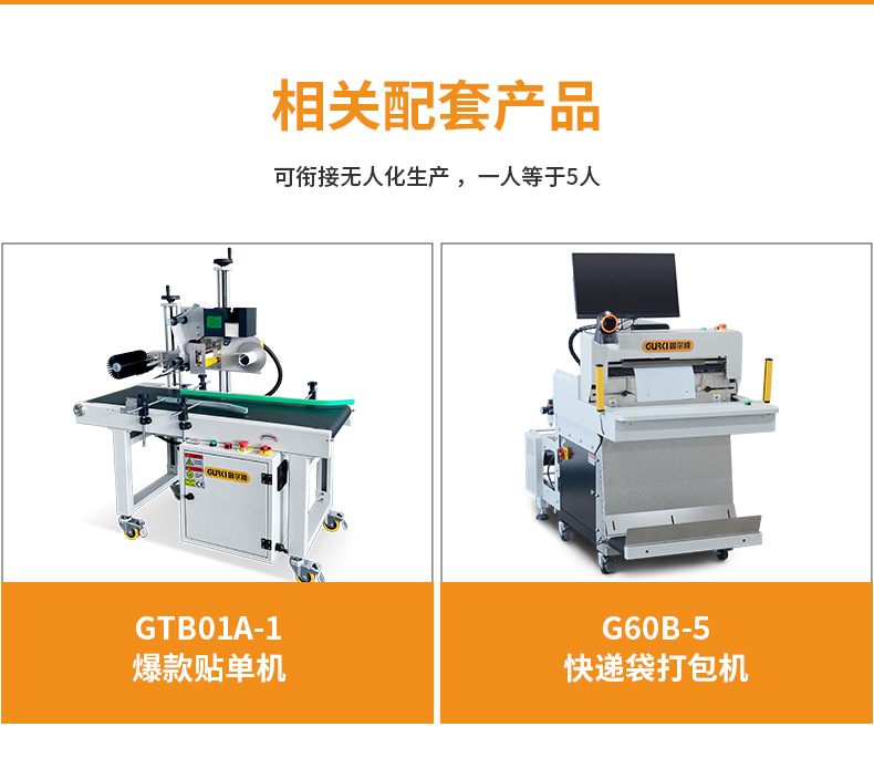 電商封箱機配套快遞貼面單機,封箱貼面單效率日發8000+。具備一鍵式傻瓜操作,自動化封箱貼面單一步完成,保養簡單,穩定性強的特點